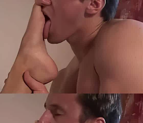 He can't resist licking, smooching, and smelling my sexy soles, making him explode with pleasure!