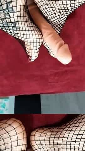 Irina Vega gives footjob in pantyhose