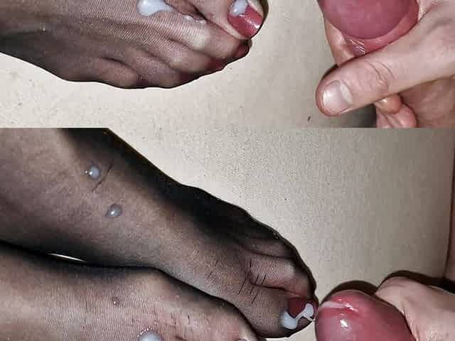 Pantyhose Girl Gives Me A Feetjob ,ripped Her Nylons ,fingers Her Pussy, I Cum On Her Nylonfeet