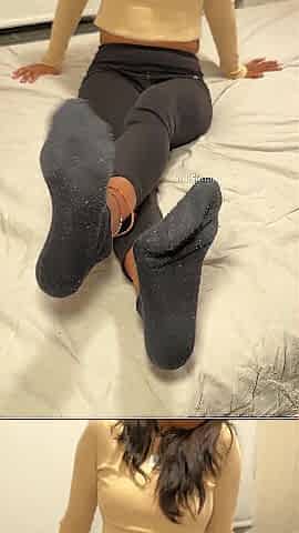 Footjob In a t-Shirt And Leg Warmers – Secret Footjobs