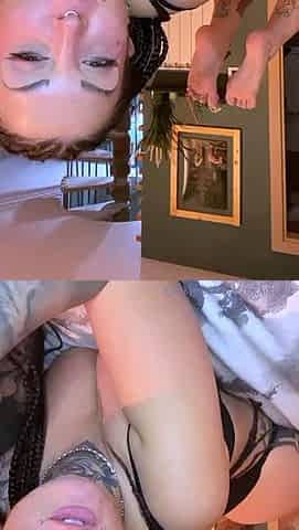 Putting both legs behind her head and sucking toes