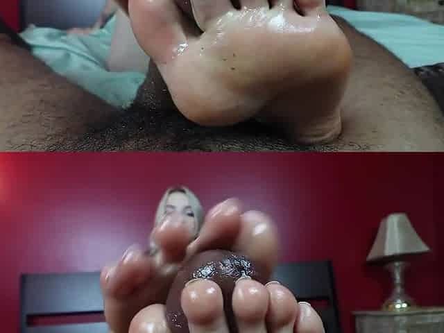 Old Man Gets A Sloppy Footjob While Fingers Hot Blonde Tight And Wet Pussy Milf For A Huge Cumshot P2