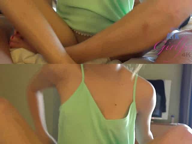 Gorgeous teen gives a nice footjob before getting her pussy screwed by horny guy