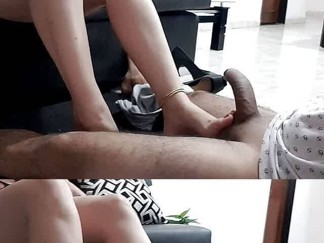 Secretary gives footjob-cum on feet-foot worship-cumshot-foot fetish