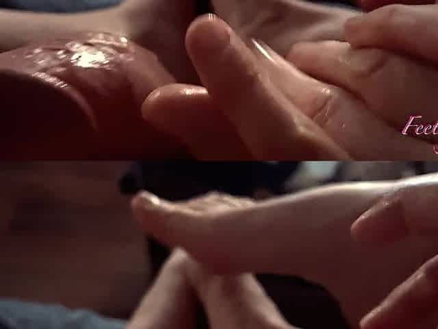 Feet beauty giving foot wank before hardcore with fortunate boy