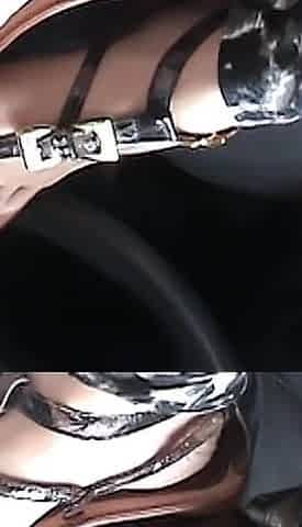 Feet in tall heels, showing my vagina, and a sex toy footjob!
