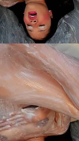 Hot young girl with oil on big boobs and ass sucked big dick