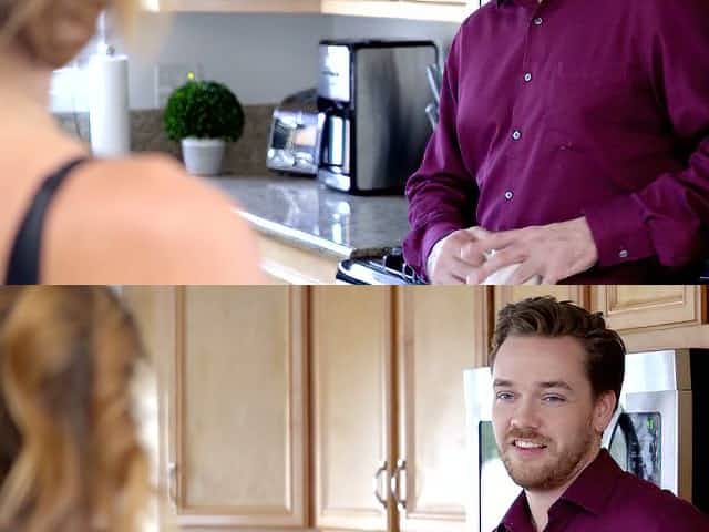 After kissing her hubby curvy sexpot gets poked on the kitchen counter
