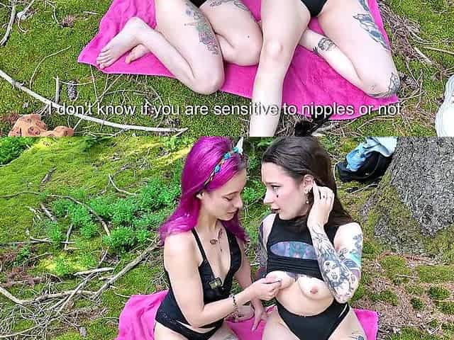 Two alternative girls have a picnic in the woods and it gets steamy