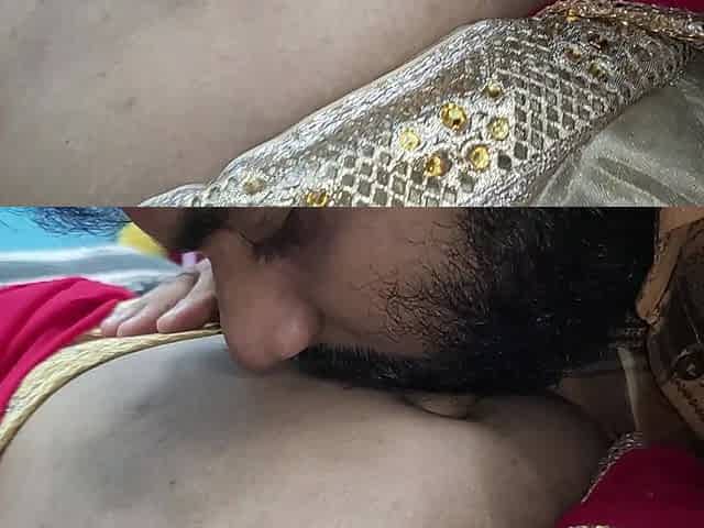 Red Half Saree Navel Lick Romance