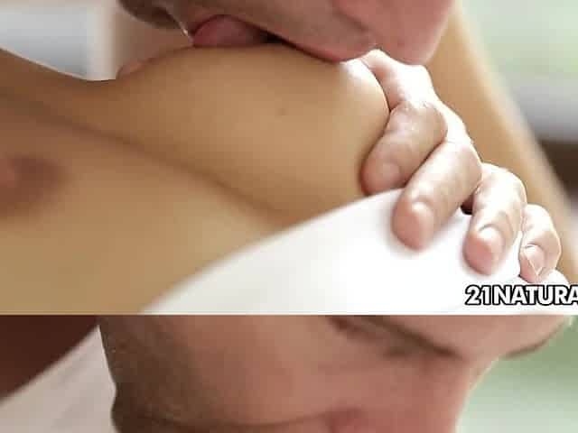 By gently kissing her Asian lips he gets the brunette horny for his big cock