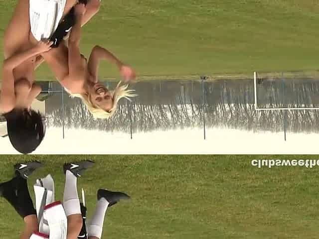 Hawt Blond Lesbos Giving a kiss And Touching Their Bazookas!