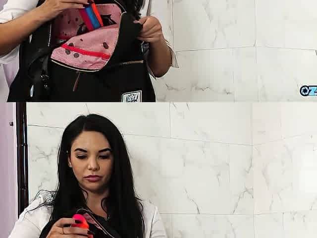 Belle Star and Celeste Star are fucking with a long sex toy on cam