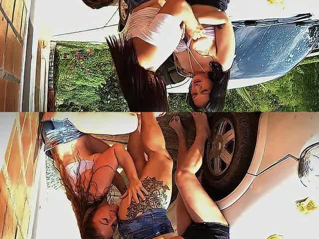 Mis amigas y yo lavando el carro de un cliente que termino viendo como follamos