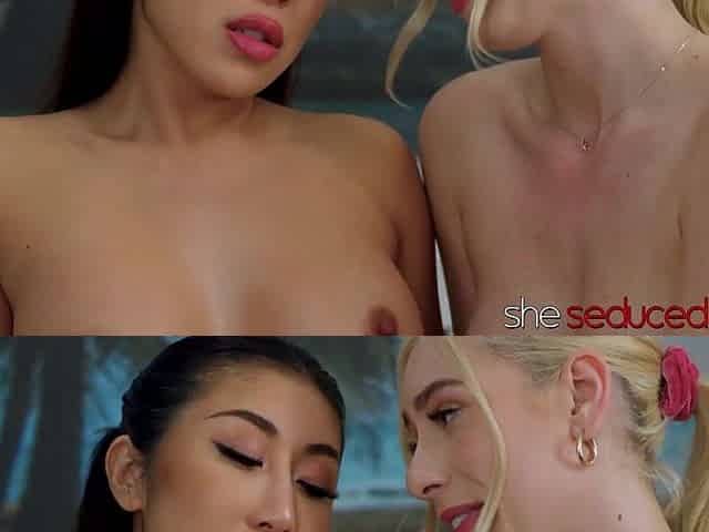 Breasty Kay Ravishing Seduces Her Oriental Roommate Nicole Doshi