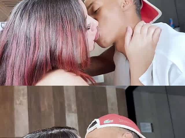 Stepmom Kiss Cat and stepson enjoy some porn, jacking off to creampie pleasure on their hotel vacation