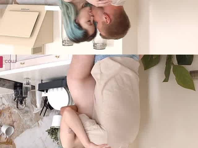 Rebecca Nikson - Hottie with blue hair bangs in the kitchen