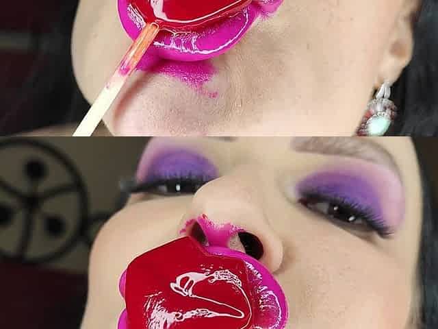 Valentine's Day Lip Fetish Sucking Lollipop and Kissing