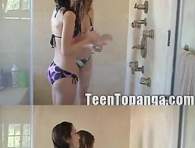 teen 18+ hotties go lesbo kissing in the shower