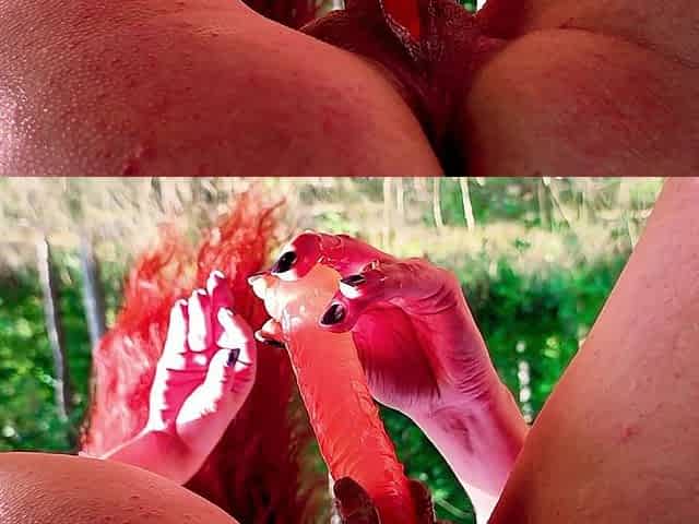 Walking in a forest on a cold day, I got a sexy schlong to heat my snatch