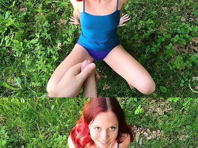 Fast oral and footjob in the spring forest with pinkhair beauty