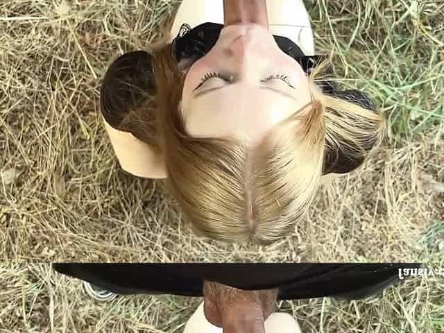 A slutty blonde wants to get a hard bang right in he woods