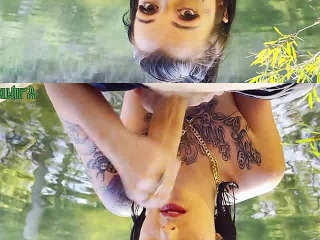 Petite Tattooed Slut Sucks Cock In Public Rainforest