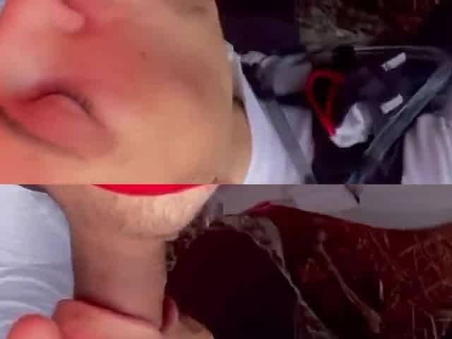 Suck stranger cock in forest and swallowed her cum