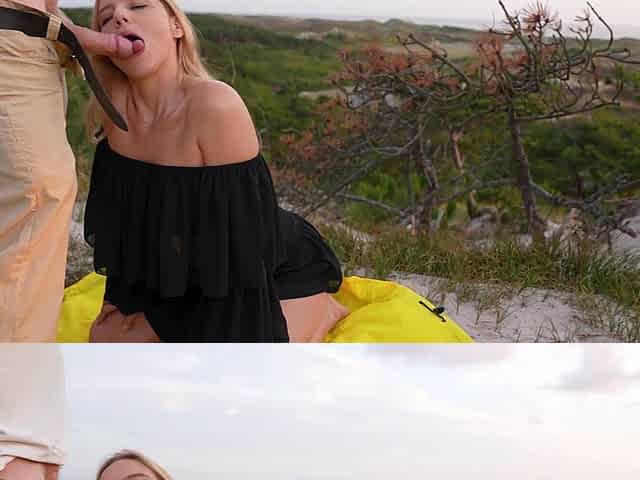 Outdoors video of redhead Elin sucking a fat dick in the woods