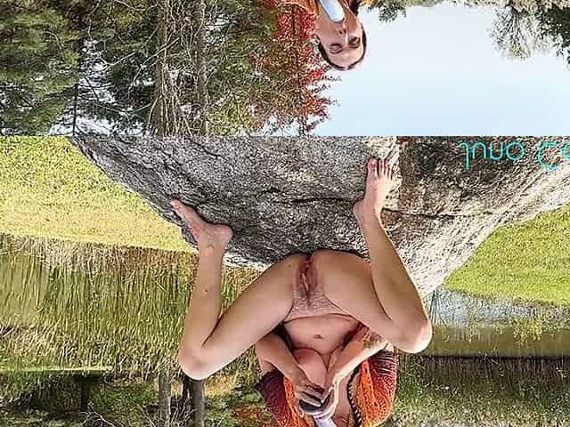 Eva Murkovski stretches her cunt with a big dildo in the forest