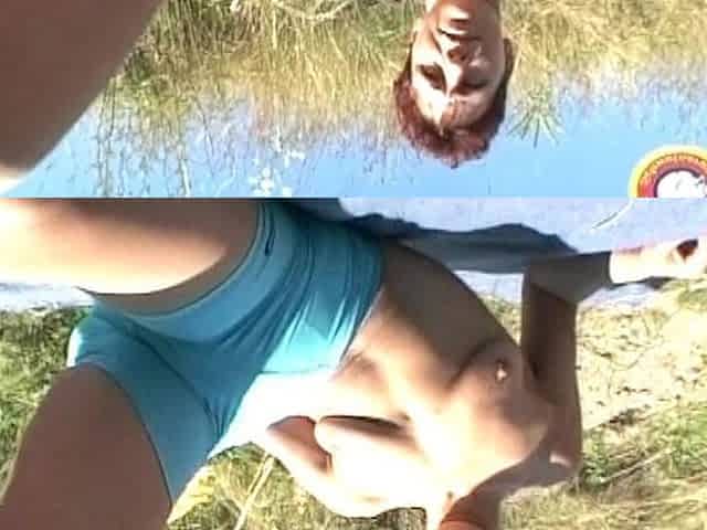Short Haired German Babe Shaving Cunt in the Forest