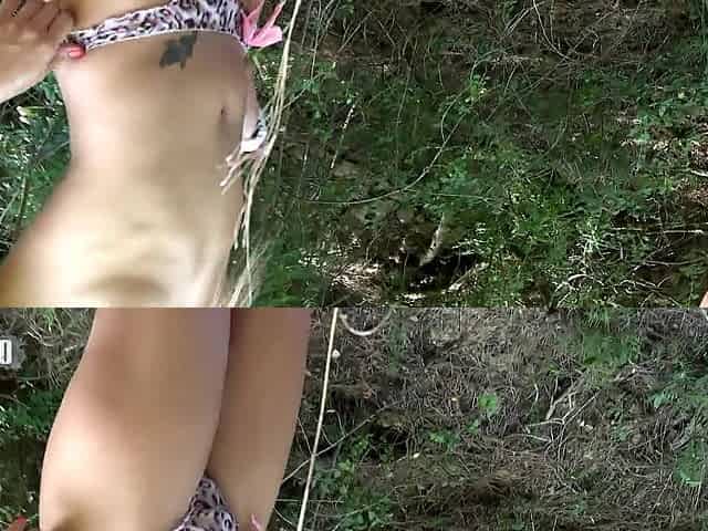 Cum watch my leaking soaked snatch in the woods as poison Ivy