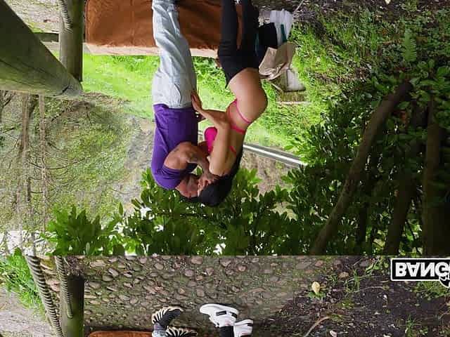 Seductive stranger gets plowed by a mysterious dude in the park while flaunting her boobs