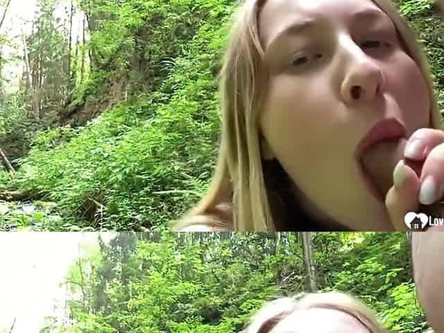 Babe Blowjob And Sensual Fucking In The Forest After School - Cumshot