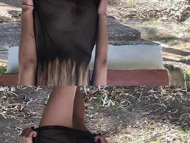 "Real outdoor fucking with pulled geek wearing spex and stockings"