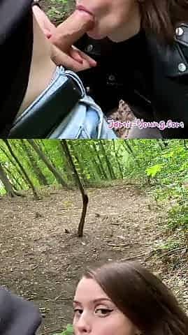 Forest Nymph Sucks a Stranger's Cock and Gets a Load of Warm Cum in Her Mouth