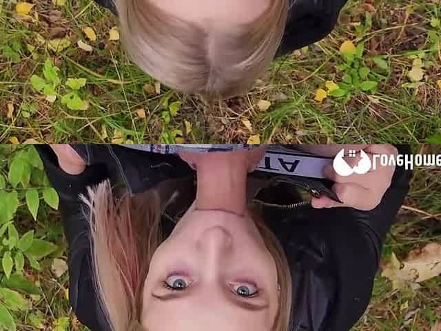 Beauty with bright hairs Forest Whore swallows cum after oral sex