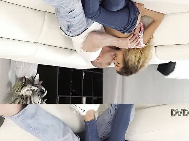 Miniature golden-haired Verlonis likes to ride dad's large penis