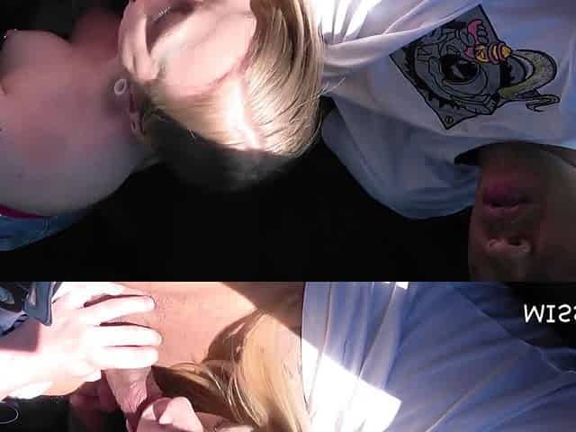POV car blowjob from a busty amateur chick - sucking dick like a pro!