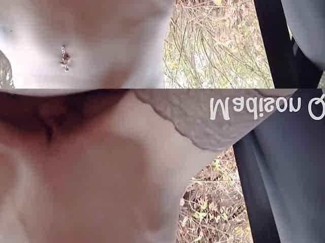 Playing with my shaggy twat in the forest