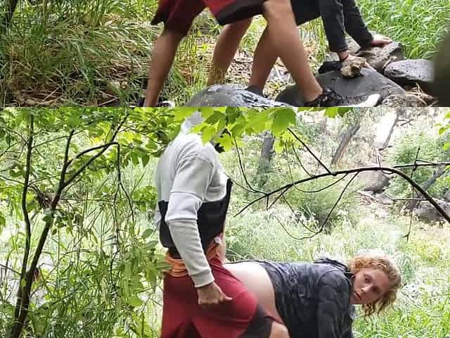 Hardcore outdoor fucking in the forest with Chayenne & her BF