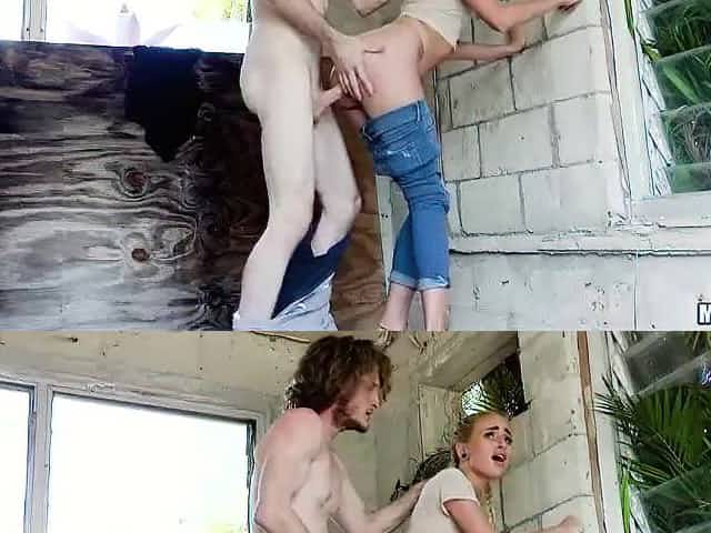 Marvelous blonde teen with a hot ass getting nailed hard in the woods