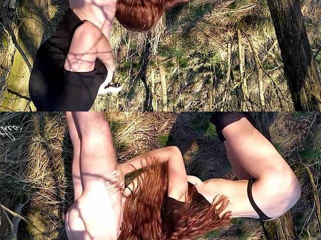 Pretty woman fucked in the woods, hot redhead caught by stranger in public place