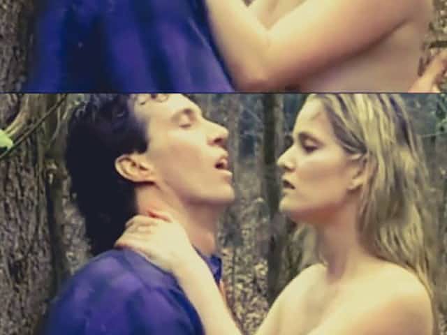Elisabeth Moss is making out with her lover, in the forest, previous to having sex with him