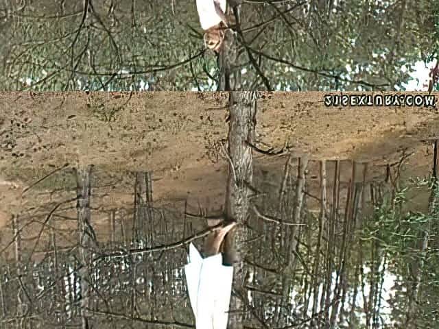 Raven haired dumpy harlot pissed on the birch in the forest