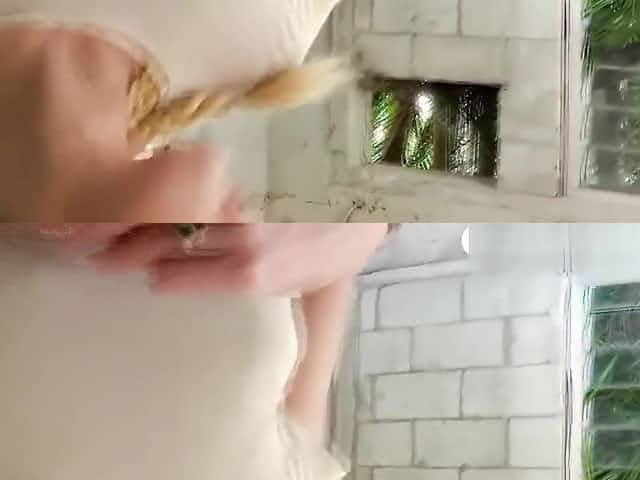 Blonde chick masturbates in the woods