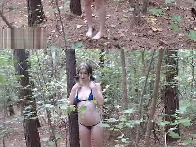Topless and nude walk in forest