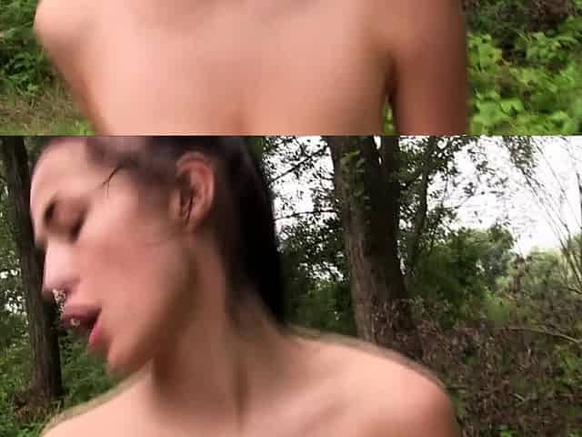 My horny brunette stepsister Xkendy has a wild fuck-a-thon in the woods