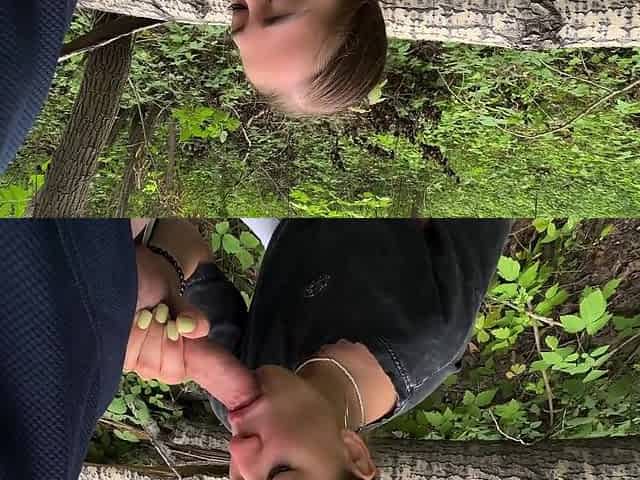 Отсосала член друга во время прогулки в лесу - Отсосала член на природе