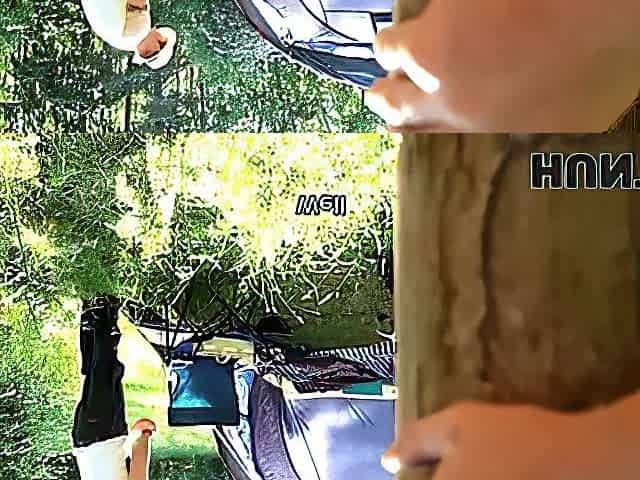 Enjoyment with buttplug outside by a campfire. People camping near by, public trail very close.